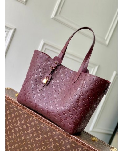An elegant work-to-weekend shopper, the All In One MM lives up to its name. It is crafted from cowhide in a signature Rouge Concerto palette, inspired by Louis Vuitton lipsticks and can be styled two ways: as a round-shaped hobo bag or open tote. The versatile design is accented with a decorative LV padlock and name tag, and is generously sized to fit a laptop, amongst other daily essentials.