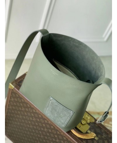 The Verso Hobo in LV Touch calfskin leather blends style and versatility. Its reversible design offers two distinct looks: smooth grained leather on one side, and matching-colored suede on the other. Each side features a pocket with a discreet stitched V signature, while a removable suede pouch adds extra functionality.