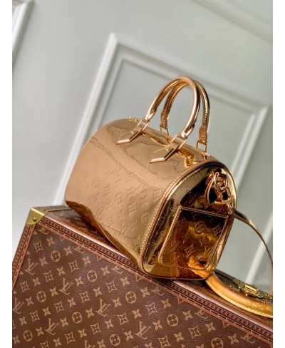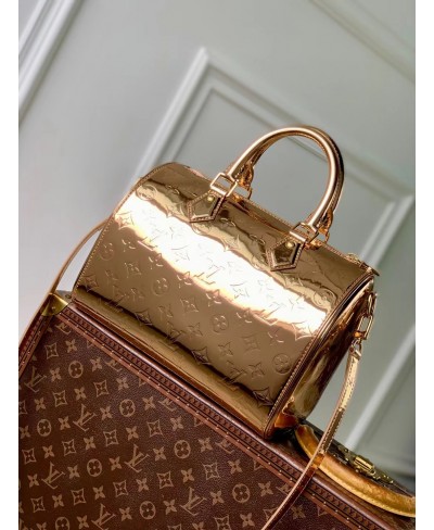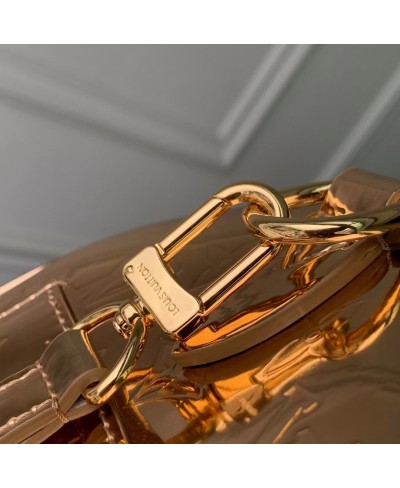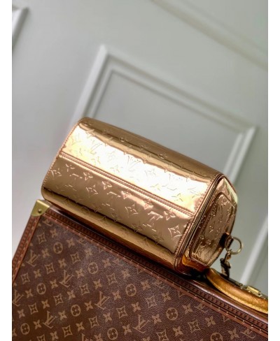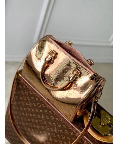 The iconic Speedy Bandoulière 20 is reimagined for the LV Ski collection with the Monogram Miroir signature – the exclusive Copper colorway makes a statement on and off the slopes. It is crafted from laminated canvas for added durability and is adorned with tonal rose gold-toned hardware. The leather strap can be removed, offering multiple carry options.