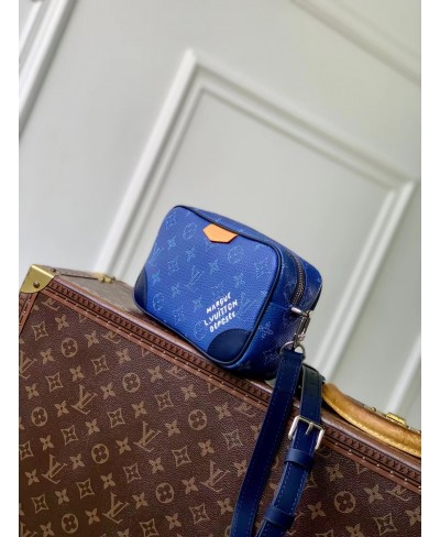The Trocadéro Wearable Wallet is made from colored Monogram Heritage coated canvas, with cowhide leather for the reinforced corners, front patch, and zipper puller. Lined in ecru cotton, it fits a phone and small essentials. The removable, adjustable shoulder strap allows for shoulder or cross-body wear.