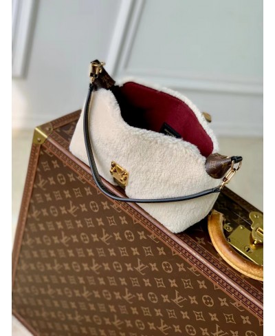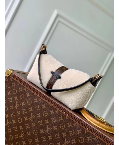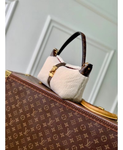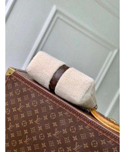 This LV Ski edition of the Pochette Mia makes a chic statement, day or night. It is crafted from cream shearling with a contrasting Monogram canvas trim and features elegant gold-toned hardware. The magnetic S-lock closure is a Louis Vuitton signature, celebrating the House’s quality craftsmanship and heritage.