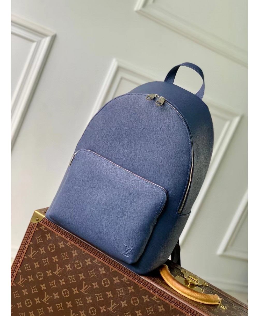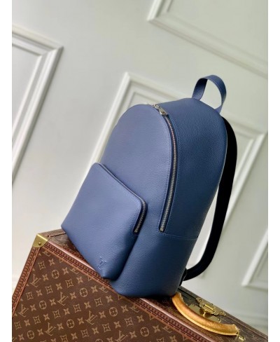 This lightweight Discovery Work Backpack in waxy calfskin features a spacious design that comfortably accommodates daily essentials. The interior, lined in matching colored textile, boasts a padded compartment for a 14-inch laptop and two flat pockets for phones. Signed with embossed LV Initials, the outside zipped pocket provides quick access to essentials.