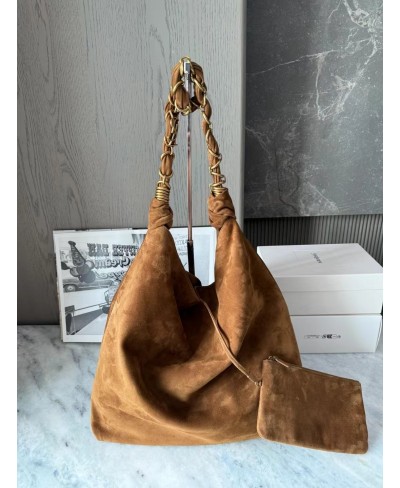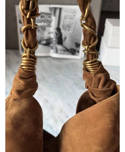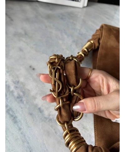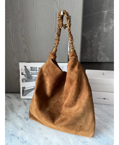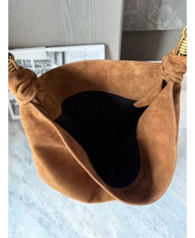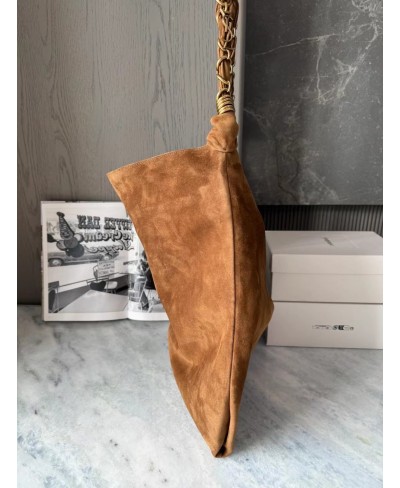 Spacious bag in suede featuring a woven CASSANDRE jewelry chain.