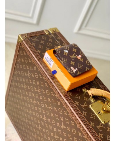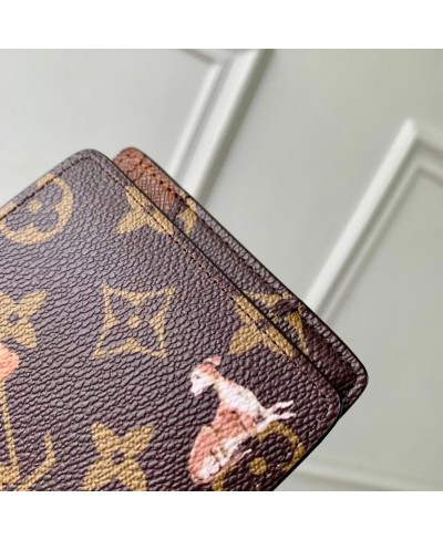The compact Multiple Wallet is fashioned from Monogram Forest coated canvas, where the Monogram motif is paired with whimsical forest animals. Bucolic scenes appear on both the exterior and the lining. Small enough to fit into most pockets, it features five card slots, two bill compartments, and two side slots for receipts.