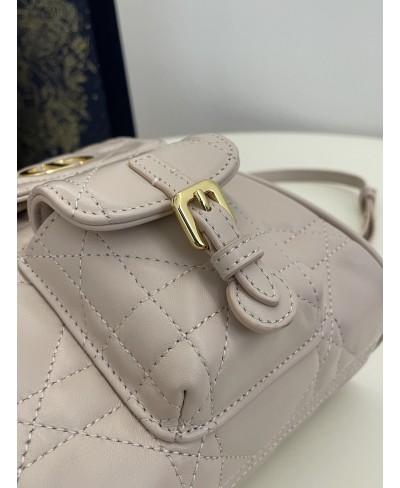 Questo zaino Dior Caro è un modello moderno ed elegante. Realizzato in pelle di agnello rosa cipria, è impreziosito dall’impuntura Macrocannage. La pattina è ornata dalla firma CD in metallo con finitura color oro anticato e rivela uno scomparto principale con coulisse, mentre la tasca piccola con pattina è ideale per custodire tutto l’indispensabile. Caratterizzato da dimensioni piccole, presenta un manico color oro e spallacci regolabili per un comfort superiore.Composizione tessuto principale: pelle di agnello e pelle di vitello