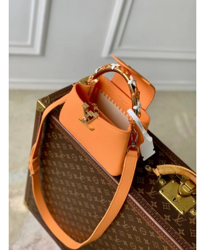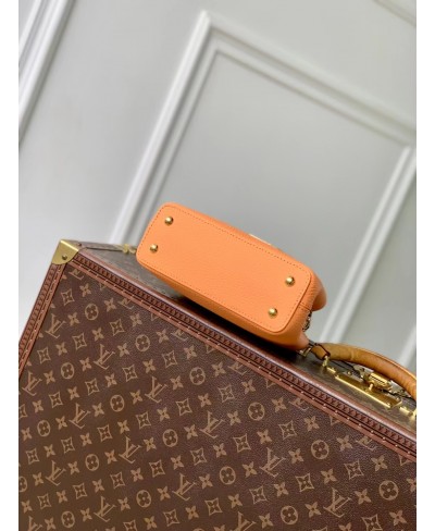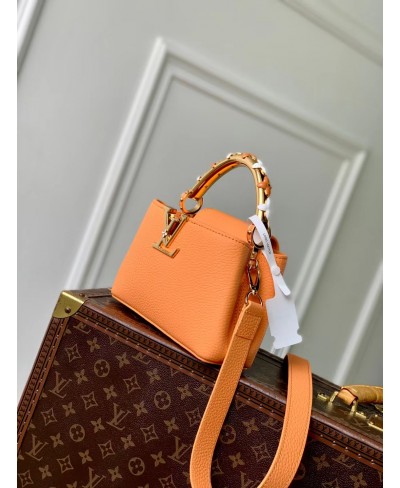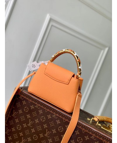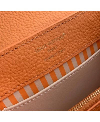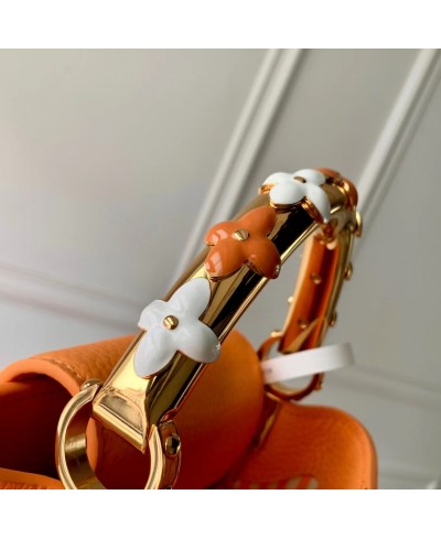 Parte della collezione Ivy, questa edizione della Capucines Mini è decorata con fiori smaltati dipinti a mano per creare una finitura romantica. È realizzata in pelle Taurillon e impreziosita dalle iniziali LV dorate, che rendono omaggio al savoir-faire della Maison. Progettata per contenere gli oggetti essenziali di tutti i giorni, questa borsa a doppia tracolla presenta un interno suddiviso in scomparti e può essere indossata in diversi modi.