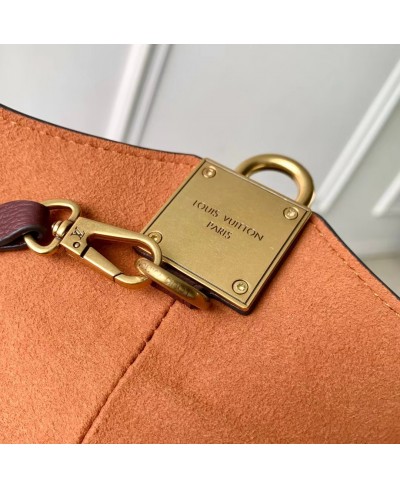 La borsa Hobo MM coniuga un'estetica casual-chic con lo stile raffinato di Louis Vuitton. L'elegante modello è proposto nella distintiva colorazione rosso concerto, impreziosito dall'iconico lucchetto dorato dalla finitura anticata. L'interno è arricchito da una pratica tasca piatta e da una pochette amovibile in tela Monogram, perfetta per riporre gli oggetti più piccoli.