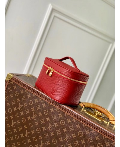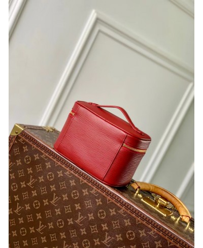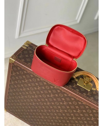 Il beauty case Nice Mini è realizzato nell'iconica pelle Epi, declinata in un'audace nuance ispirata ai rossetti della linea di make-up La Beauté di Louis Vuitton. Il raffinato modello è completato dalla fodera in tessuto lavabile nello stesso colore e dalla pratica tasca con chiusura zip sotto la patta. L'accessorio compatto è ideale per contenere prodotti di bellezza essenziali.