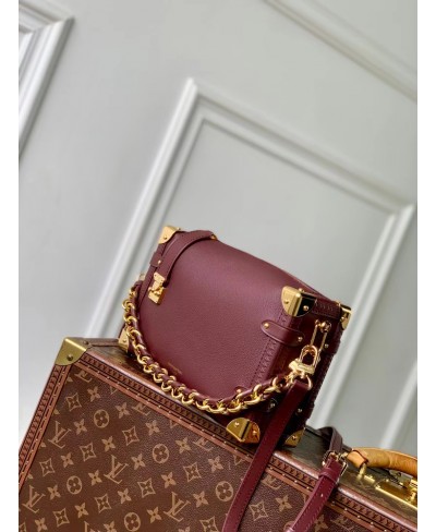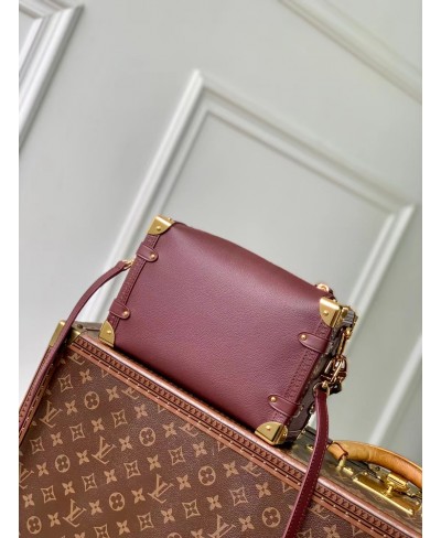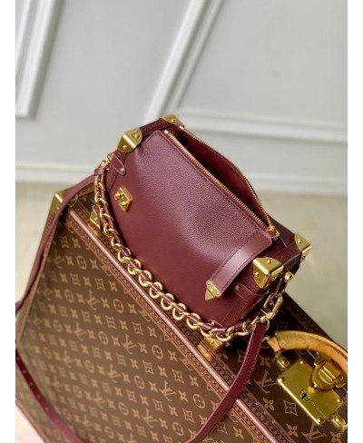 La borsa Side Trunk MM è proposta in un elegante color vinaccia, ispirato all'identico rossetto nella linea di make-up La Beauté Louis Vuitton. Il modello presenta dettagli in metallo dorato, catenella intrecciata, finiture con motivo Monogram e sistema di chiusura a s. L'accessorio, indossabile in diversi modi, è perfetto per portare con sé tutto l'essenziale, dal giorno alla sera.
