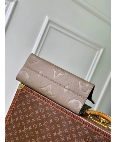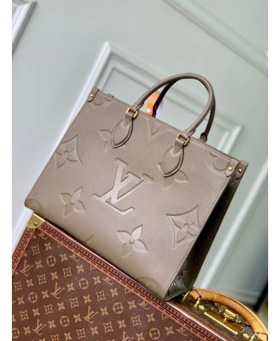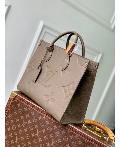 La borsa tote OnTheGo MM è proposta in una versione dall'intramontabile tonalità smoke, perfetta da abbinare a qualsiasi look. Il modello, realizzato nell'iconica pelle Monogram Empreinte, è arricchito dalle finiture in vacchetta e dalle eleganti parti metalliche dorate. Il capiente accessorio, completato da svariate tasche e dal porte adresse amovibile con specchietto, può contenere un laptop e altri oggetti essenziali.