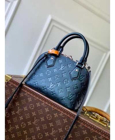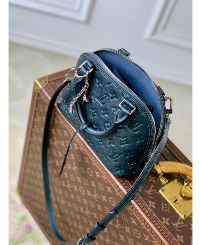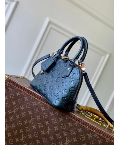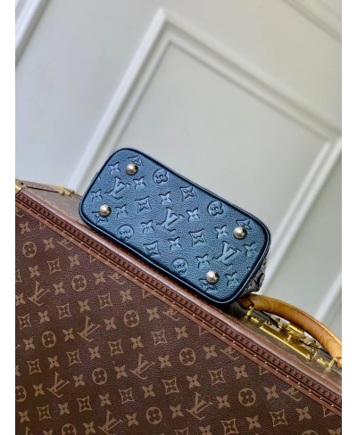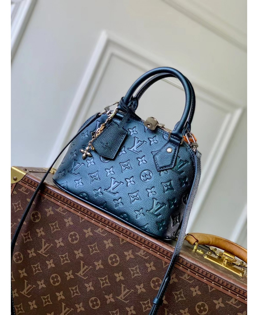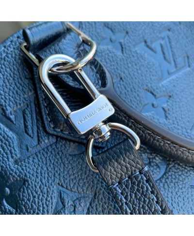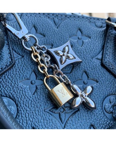 Nell'esclusiva tonalità Shimmery Ink, questa edizione LV Ski della borsa Alma BB trae ispirazione dal fascino delle notti invernali. Realizzata in pelle Monogram Empreinte, è impreziosita da una finitura perlata e arricchita da un charm per borse in metallo tricolore, amovibile e applicabile anche ad altri accessori. I dettagli iconici includono un portachiavi a clochette, oltre a un lucchetto e chiavi argentati, omaggio alla tradizione della Maison nell'arte della valigeria.