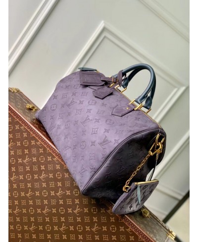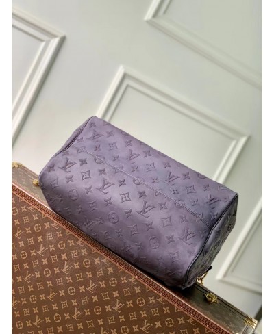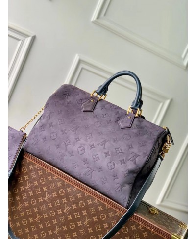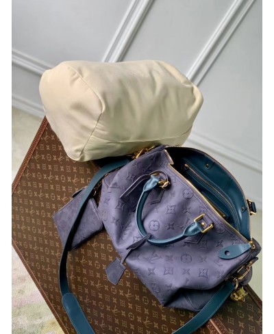 La borsa Speedy P9 Bandoulière 40 è proposta in morbidissima pelle scamosciata per un'elevata sensazione di comfort. Le iniziali LV e gli iconici fiori Monogram impressi donano al modello un elegante effetto in rilievo. L'accattivante accessorio, caratterizzato dall'originale colorazione, include due raffinate sciarpe, ideali per impreziosire i manici.