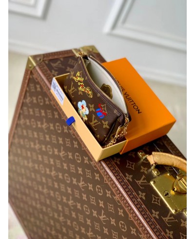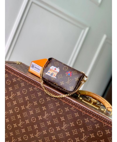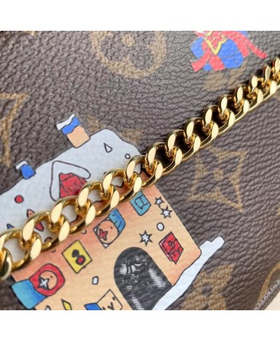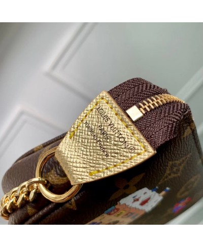 La mini pochette Accessoires, parte della collezione Vivienne Winter Holiday, è impreziosita da un ironico motivo raffigurante la celebre mascotte. Realizzato nell’iconica tela Monogram con dettagli in vacchetta, il modello è dotato di una catenella e un gancetto, perfetti per portare la creazione a mano o fissarla a una borsa. L'amato personaggio della Maison ispira anche il tirazip, caratterizzato da una raffinata finitura dorata.