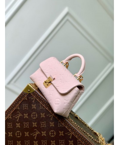 La borsa Nano Madeleine è declinata in un'elegante tonalità rosa pastello dall'allure femminile. Realizzata nell'iconica pelle Monogram Empreinte della Maison, la creazione è impreziosita dal sistema di chiusura a s dorato e dalla catenella coordinata, decorata da un charm con logo LV Circle. Il versatile modello, ideale per riporre gli oggetti essenziali di tutti i giorni, può essere indossato in diversi modi.