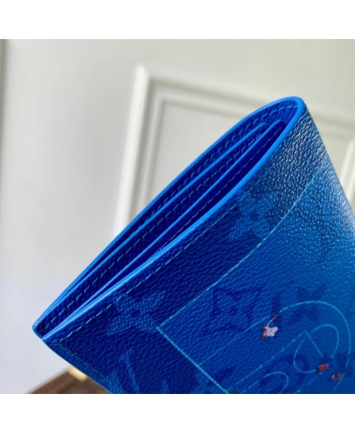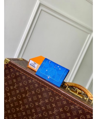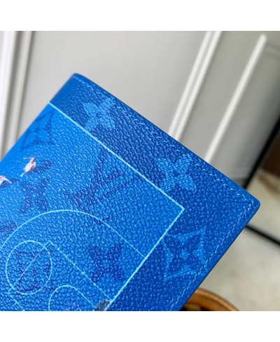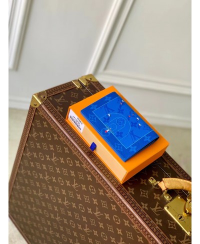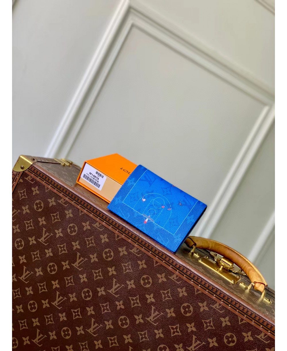 Questo porta passaporto in tela Monogram di un'intensa tonalità di blu presenta un'originale scena aerea tra giocatori su un campo da basket. Progettato per aggiungere personalità ai viaggi, custodisce in modo sicuro un passaporto e include quattro fessure per carte e una tasca piatta, bilanciando un design ironico con una funzione pratica in un accessorio vivace ed espressivo.