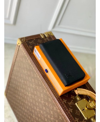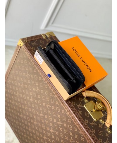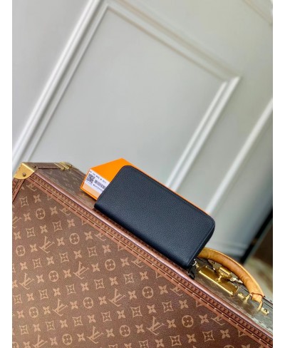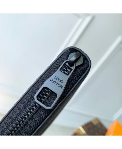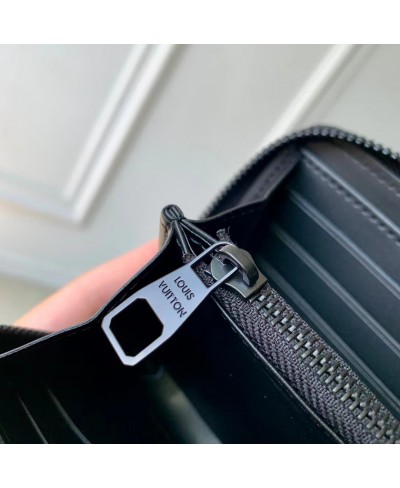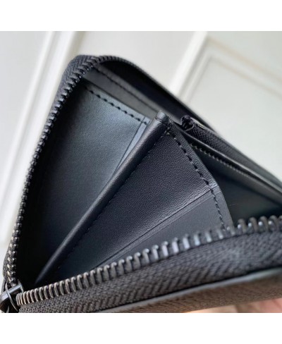 Il portafoglio Zippy Horizontal è realizzato in morbida pelle di vitello cerata. Il modello, dall'allure contemporanea, si distingue per le emblematiche iniziali della Maison tono su tono in rilievo. L'elegante accessorio è dotato di soffietti laterali, dodici fessure per carte di credito, una tasca centrale con zip per le monete e due scomparti per banconote o ricevute.