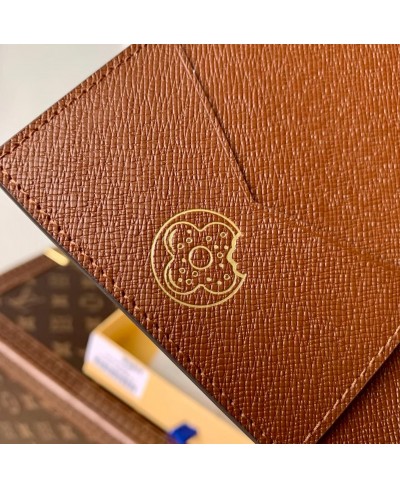 Il porta passaporto della Maison si rinnova con un tocco ironico nell'iconica Monogram Donuts. Ispirata al celebre motivo Monogram, la stampa viene reinterpretata con vivaci donuts dall’effetto tridimensionale. All’interno, la fodera in pelle tono su tono presenta un delicato motivo impresso a forma di donut, che aggiunge un ulteriore tocco sorprendente.