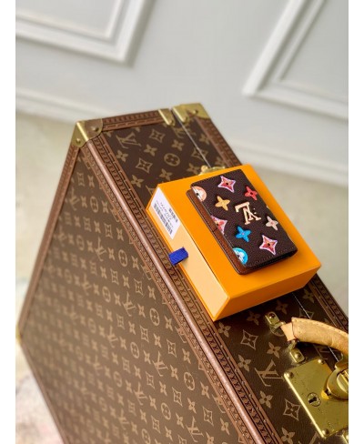 L'organizer tascabile dal design compatto è impreziosito da minuscole ciambelle che compongono l'emblematico motivo Monogram. Un accattivante effetto 3D dona un ulteriore tocco di fantasia a questo classico intramontabile. L’interno comprende tre fessure per carte e cinque tasche, mentre una tasca piatta esterna aumenta la praticità del modello.