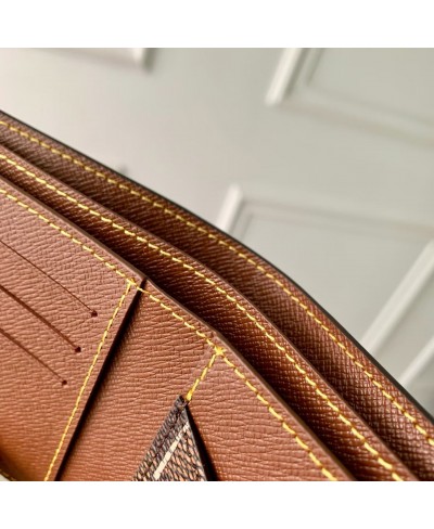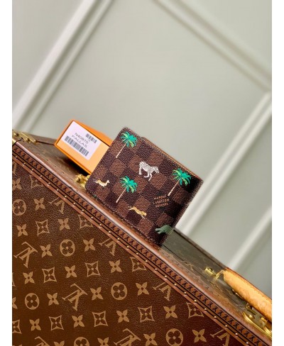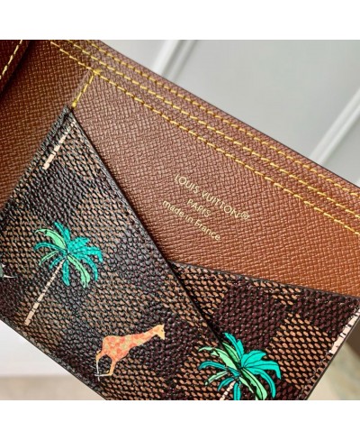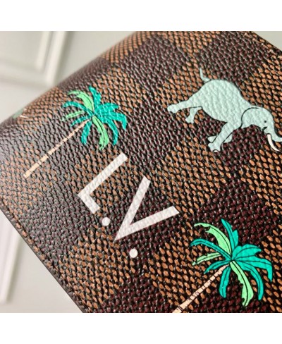 Parte della Collezione Darjeeling Limited, il portafoglio Multiple unisce la tela Damier Heritage alle audaci lettere bianche L.V. e a vivaci illustrazioni di animali. All'interno, la vacchetta color marrone chiaro crea un raffinato contrasto con la tela decorata, svelando numerose tasche e fessure per carte di credito in un design compatto che armonizza eleganza e funzionalità.