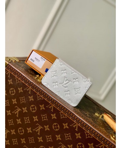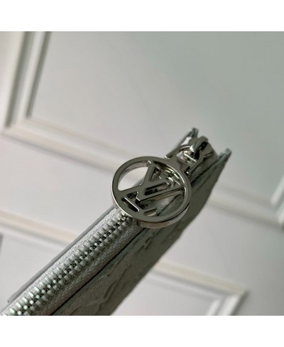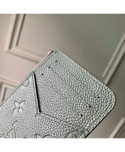 Il portacarte di credito Romy è rivisitato per la linea Monogram Empreinte in un'originale versione con finitura color argento. Il modello è realizzato in morbida vacchetta impreziosita da eleganti parti metalliche tono su tono. L'accessorio compatto presenta due scomparti, una tasca piatta e tre fessure per contenere monete, banconote e carte di credito.